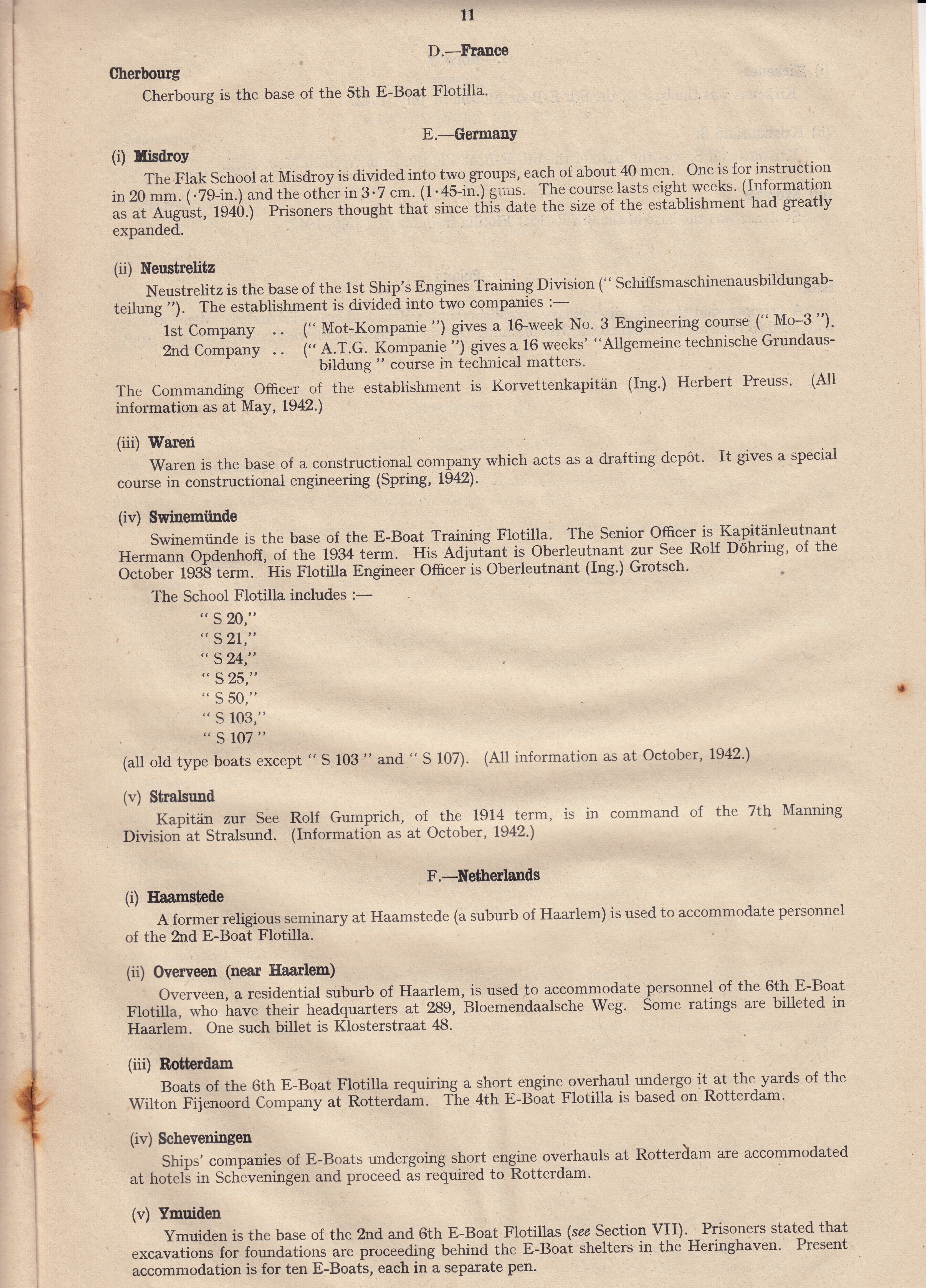 Swinemunde is the base of the E-Boat Training Flotialla. The Senior Officer is a Kapitanleutnant Hermann Opdenhoff, of the 1934 term. His Adjutant is Oberleutnant zur See Rolf Dohring, of the October 1938 term. His Flotilla Engineer Officer is Oberleutnant (Ing.) Grotsch.