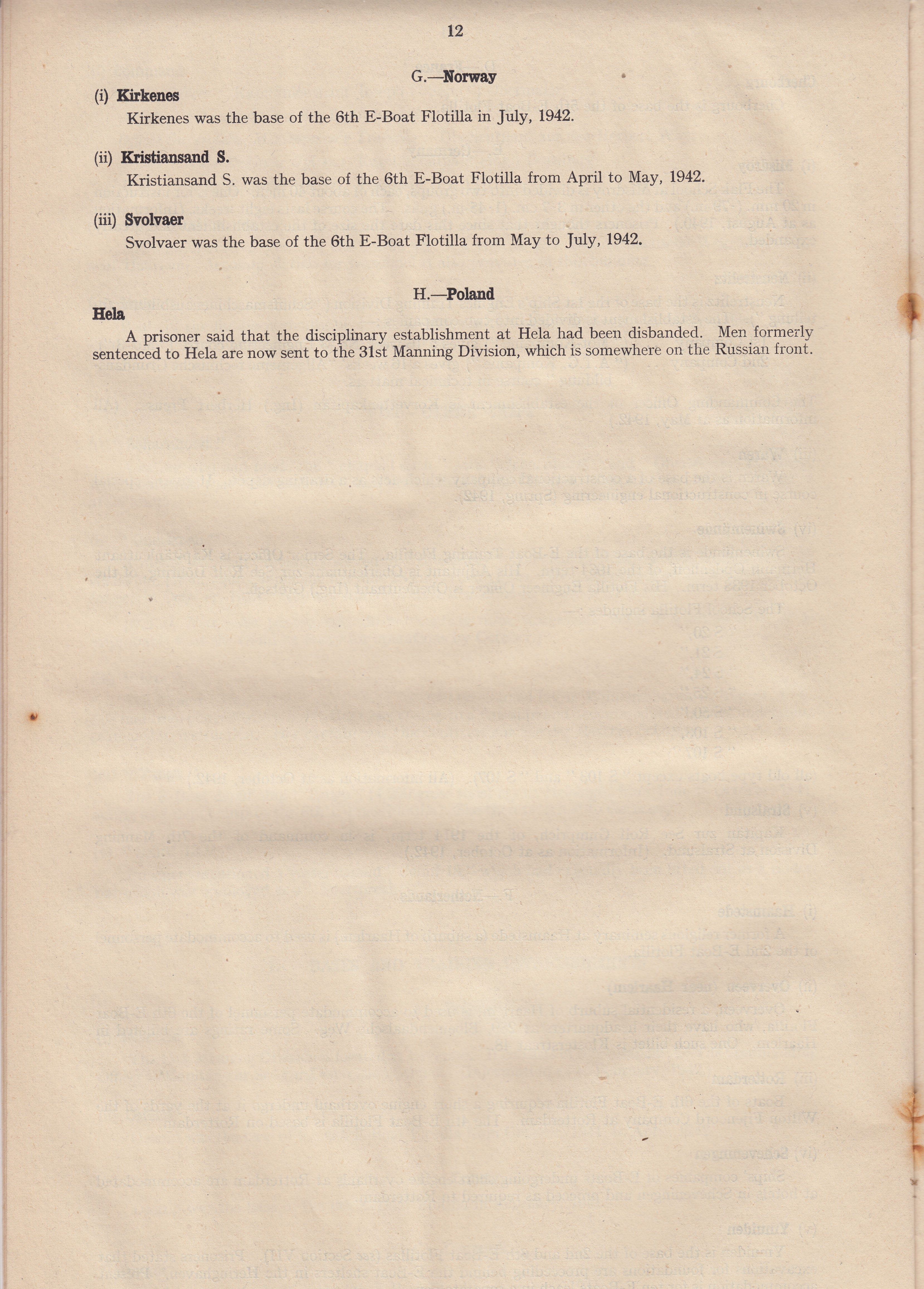 A prisoner said that the disciplinary establishment at Hela had been disbanded. Men formerly sentenced to Hela are now sent to the 31st Manning Division, which is somewhere on the Russian front.