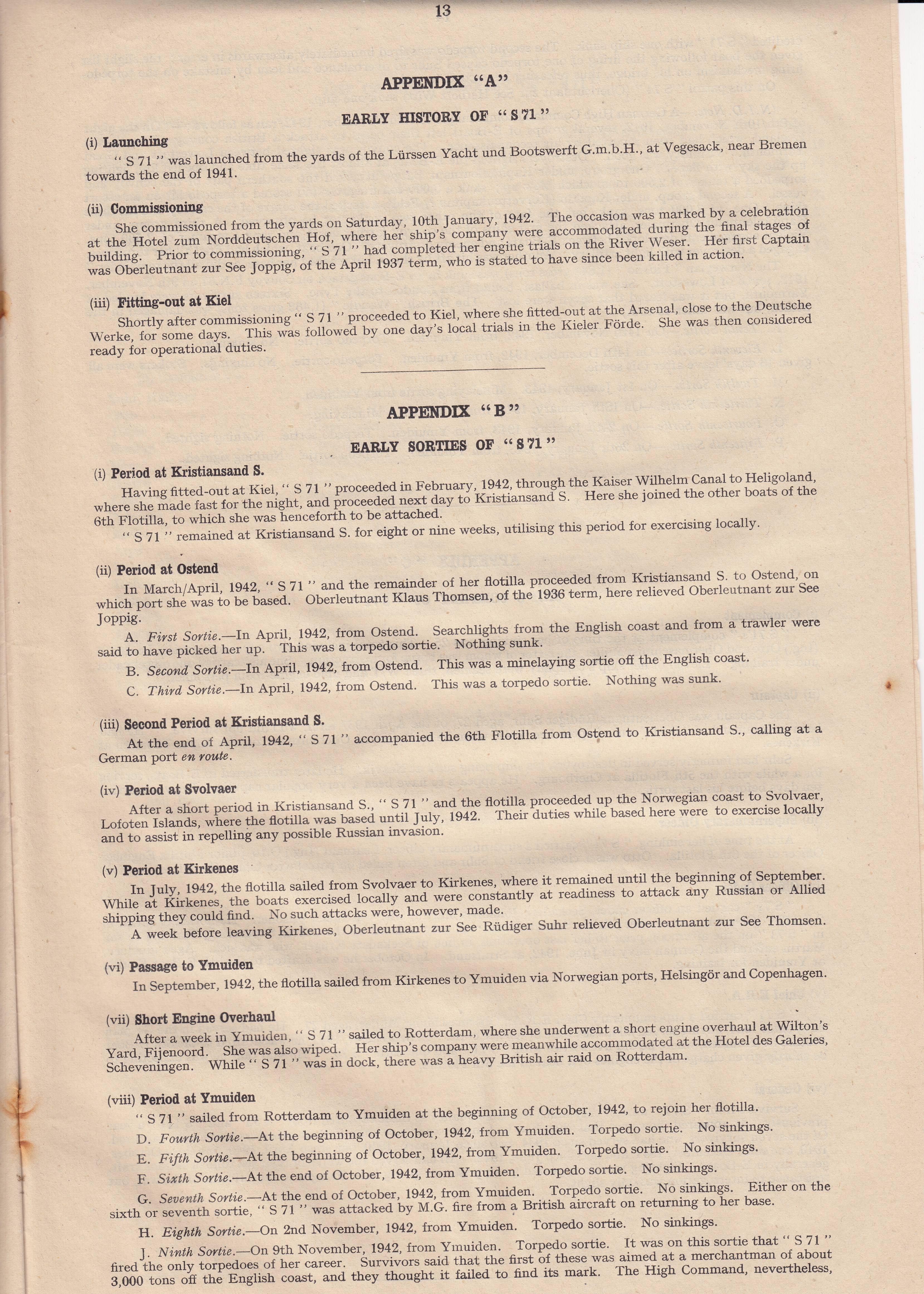 REPORT ON INTERROGATION OF SURVIVORS FROM "S 71", AN E-BOAT