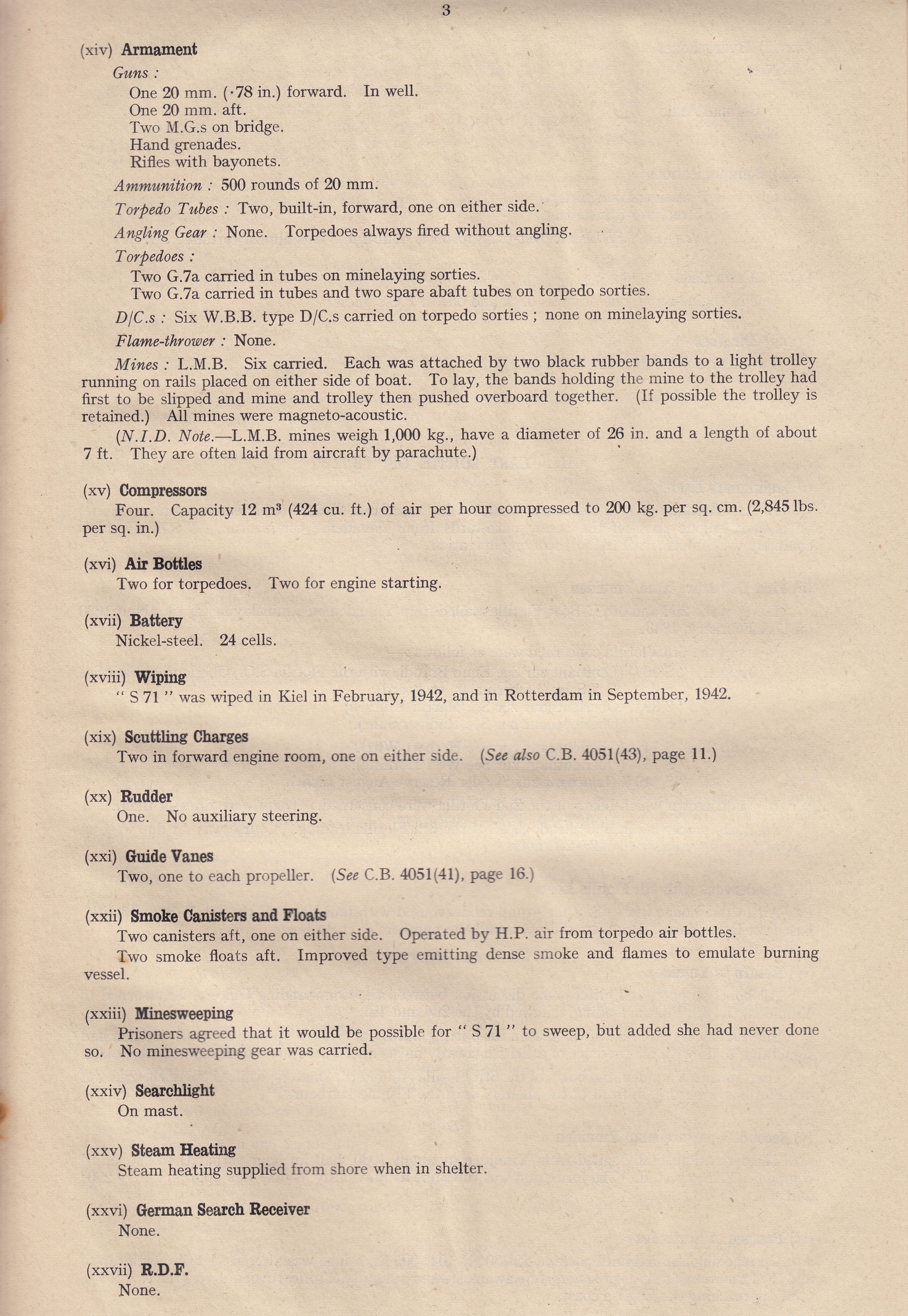 "S 71" was wiped in Kiel in February, 1942, and in Rotterdam in September, 1942.