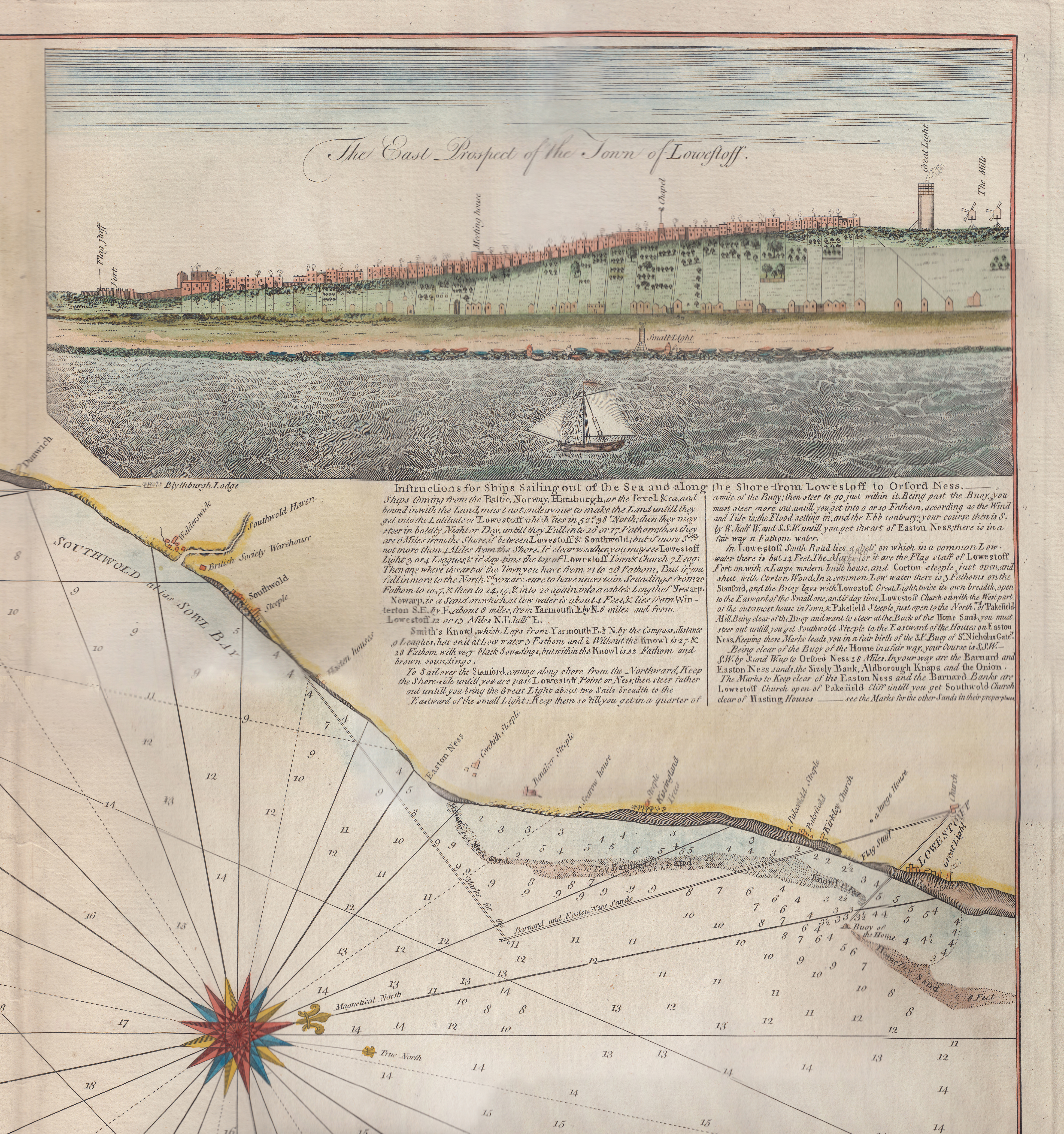 Caption: New and Correct Chart of the Sea Coast from Lowestoft to Orford