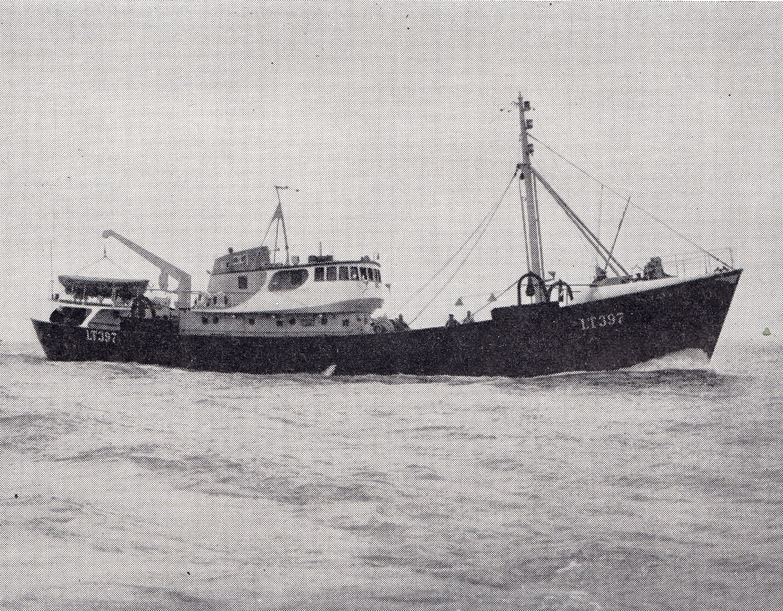 This is an advertisement for the Richards Shipbuilders, Crown Works, Lowestoft. The trawler is LT397, the "Suffolk Kinsman".